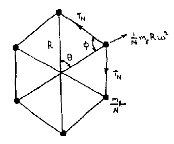The correct honda weight for the Vertical Loop is the weight which balances the tensions in the spoke against those in the loop while it is spinning. When the spoke tension plus the outward force of the honda are equal to the loop tension, the diameter of the loop does not change. What we want to determine is the honda weight which keeps the loop diameter constant. I will now derive this weight using some basic laws from mechanical physics.