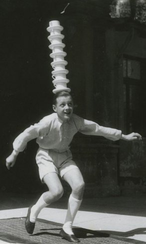 Almost a year later to the day, the telegram arrived and Rudi was duly booked to appear at Olympia, where he was a tremendous success. His employer even found him practising in the ring at three o'clock one morning, drenched with perspiration, and declaiming jubilantly that he had succeeded in throwing and balancing nine cups. "Rudi, you're wonderful, but you're stark crazy. Stop it, or you'll start to bore the wretched audience!"