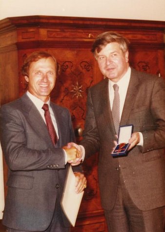 "For Rudy Horn a great juggler. Maurice Chevalier, 1958"